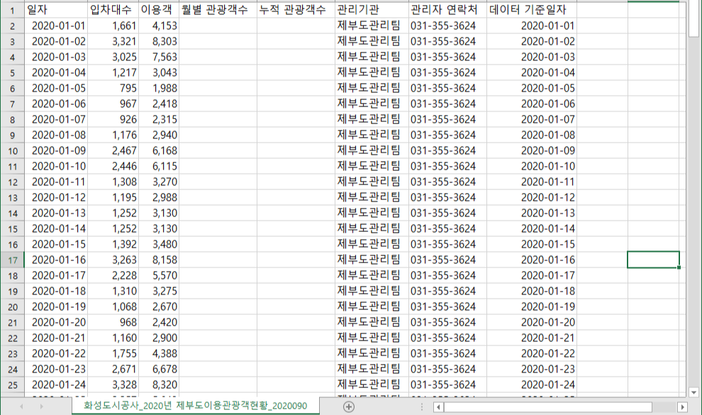 화성도시공사_2020년 제부도이용관광객현황_20200907.csv