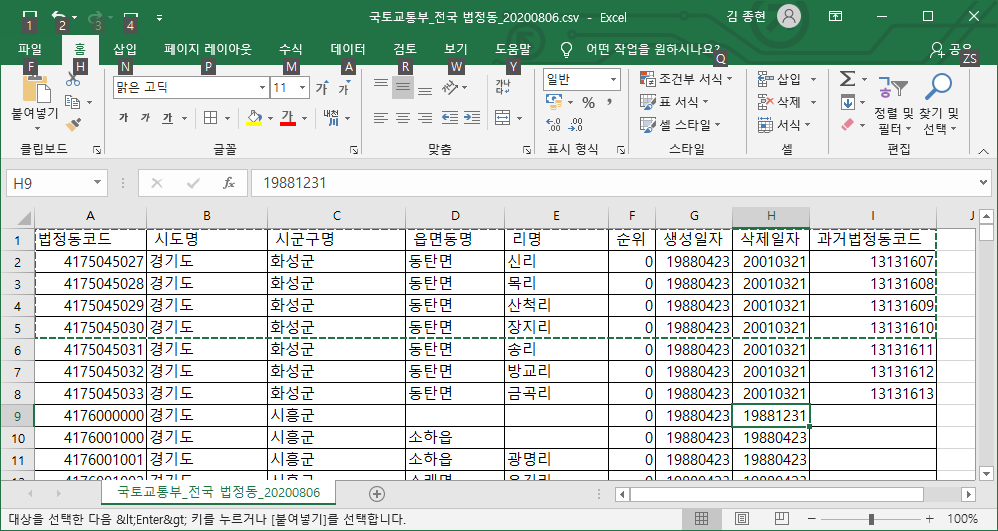 | 행정동코드 자료-2020.10.01 (2) | 2020.11.01 |